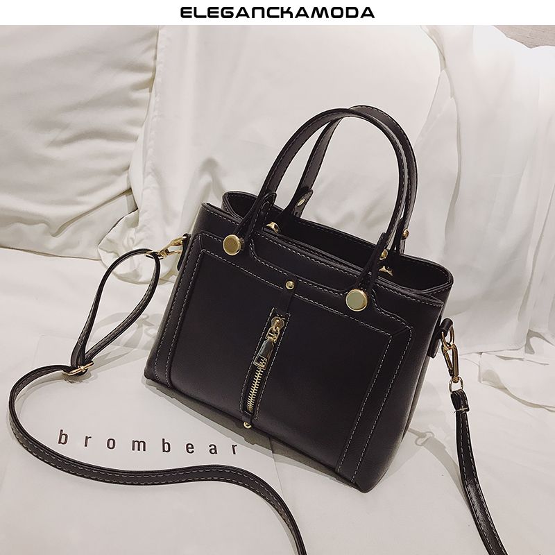damska torebka duża pojemność retro torba na ramię zamek pionowy czarny