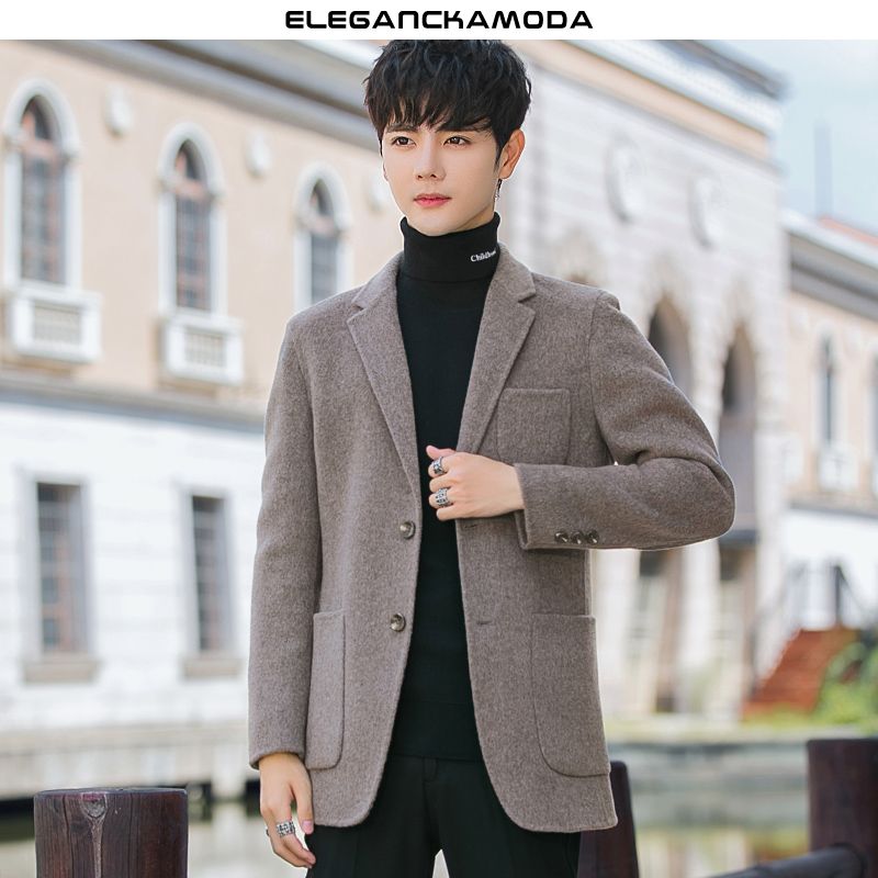 dwustronna kaszmirowa kurtka slim fit modna i ładna kurtka jesienno-zimowa brązowa