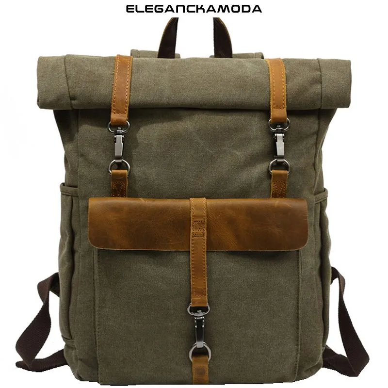 kołowrotek męski plecak płócienny torba podróżna zieleń wojskowa