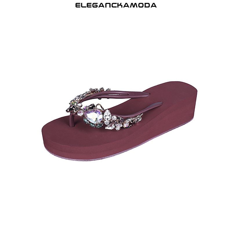 letnie damskie japonki z grubym dnem na wysokim obcasie japonki antypoślizgowe wino czerwone