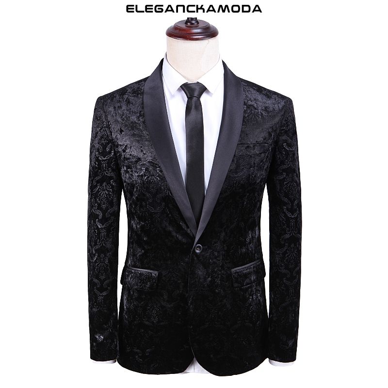 luksusowa męska marynarka garniturowa wąska elegancka kurtka jesienno-zimowa czarna