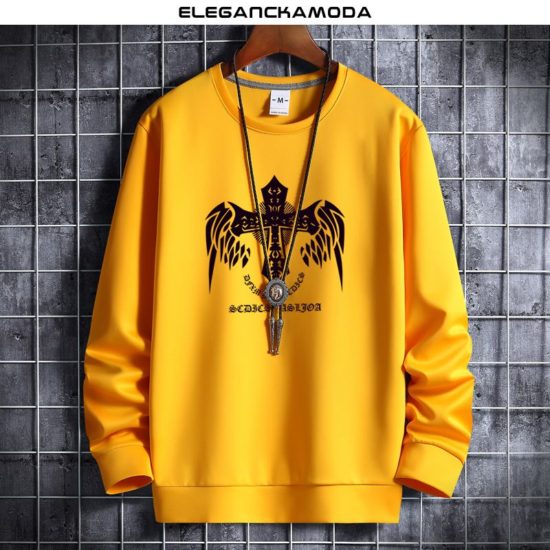 męska bluza na zewnątrz z okrągłym dekoltem na wiosnę i jesień żółta
