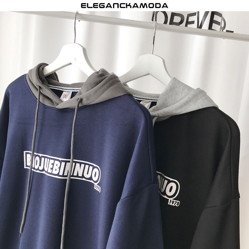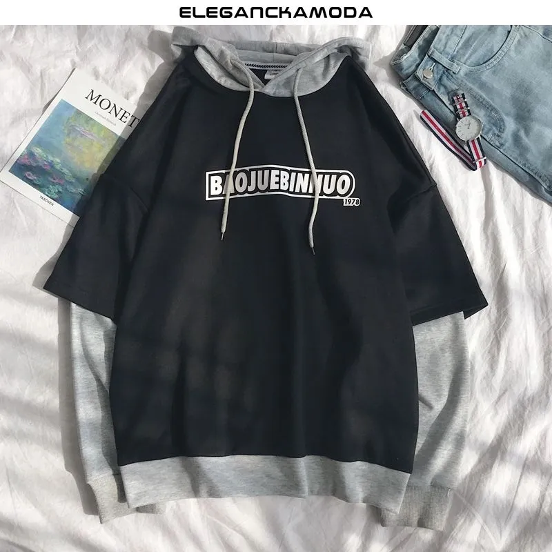 męska bluza z kapturem loose trend na wiosnę i jesień czarna