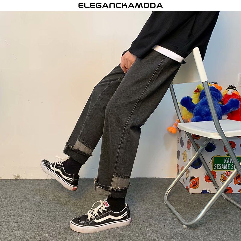 modne dżinsy męskie w długim stylu w kolorze rockowej czerni