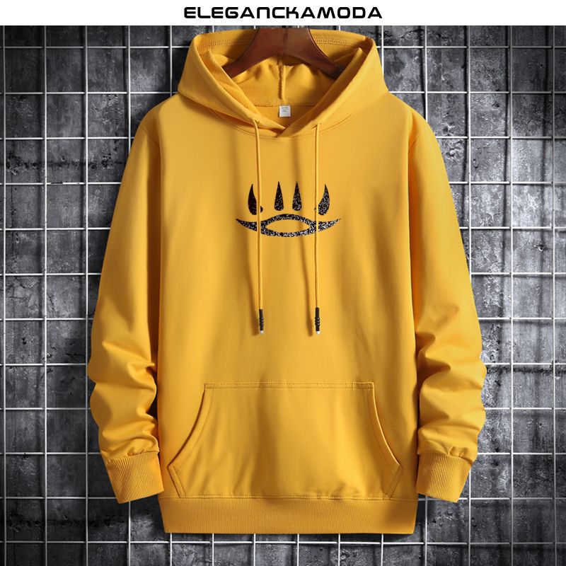 prosta modna męska bluza z kapturem wygodna sznurowana kurtka z kapturem sportowa żółta