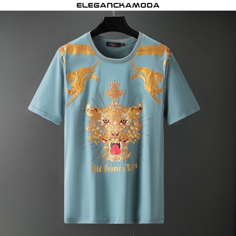 t-shirt męski z nadrukiem z krótkim rękawem z jedwabnej bawełny niebieski