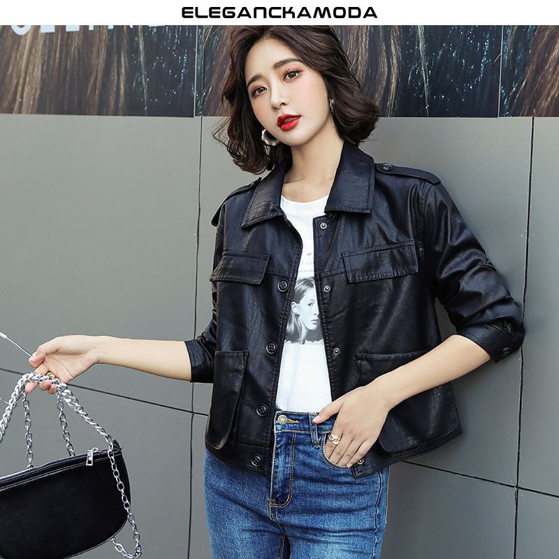 wiosenno-jesienna damska kurtka skórzana krótka wąska kurtka fioletowa