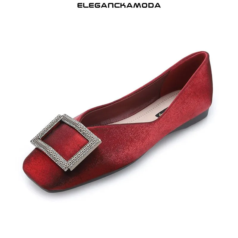 - kategoria: płaskie buty damskie z kryształkami kwadrat klamra