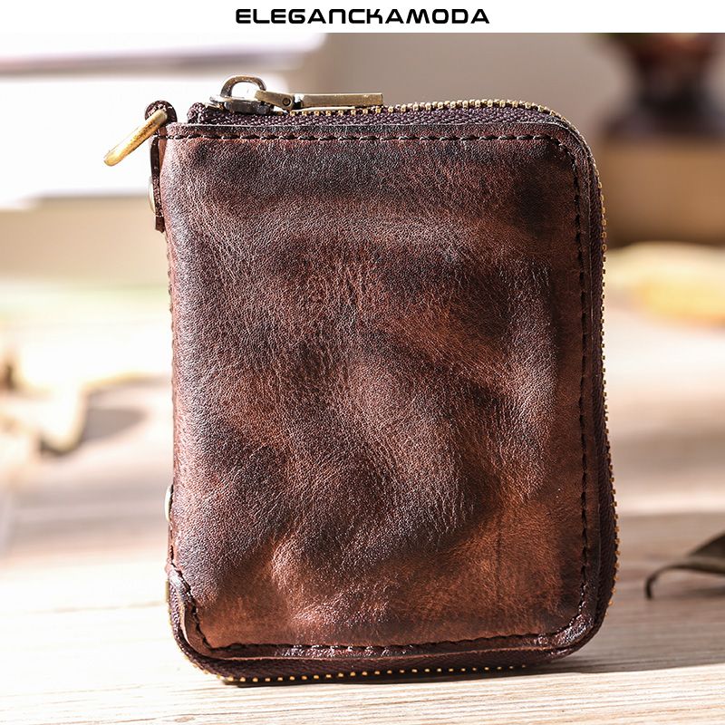 krótki portfel męski retro składany ręcznie jazdy brązowy